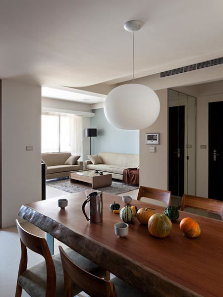 在本案例中,色彩主要運(yùn)用淺色調(diào)!其中,白、黑、棕、灰和淡藍(lán)等顏色成為了這套雅居的主要色彩!干凈而不雜亂!色彩往往能表現(xiàn)風(fēng)格,這是實(shí)踐得來(lái)的結(jié)論。在本案例中,這是一套北歐風(fēng)格的雅居。北歐風(fēng)格重在突出回歸自然!而白、黑、棕、灰和淡藍(lán)等色調(diào)與整體風(fēng)格的完美融合把原始的味道盡顯無(wú)遺。樸素是雅居帶來(lái)的整體感覺(jué),但是卻依舊不乏現(xiàn)代與時(shí)尚。