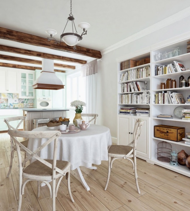 在餐廳設(shè)計(jì)上,白色圓形形餐桌,白色餐布,白色椅子,顯得干凈整潔,設(shè)計(jì)簡單,線條感流暢,光澤亮麗,整體呈現(xiàn)出素凈典雅的風(fēng)格特色。