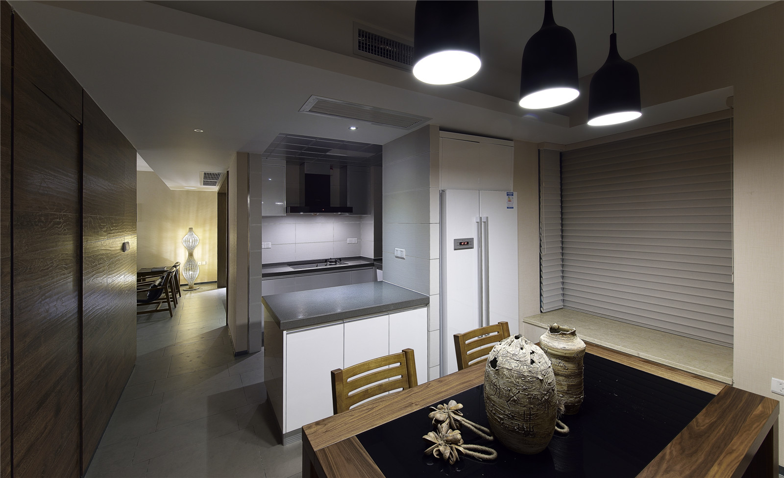 原木的裝飾給整個空間帶去復(fù)古的同時也帶來了一份沉穩(wěn)、一份神秘!倘若一定要說一說它的復(fù)古,那么墻上的各種古字畫或者陶瓷樣式都充分說明了這一點。好似一股暗香殘留!中式的風(fēng)格不僅限于此,看看窗戶設(shè)計,看看各種推拉門的設(shè)計,在這套雅居中,中式風(fēng)格無處不顯!古色古香的整體感覺,就像是穿越了一樣,回到了那個既神秘又令人向往的年代!盡顯主人的高雅品位!