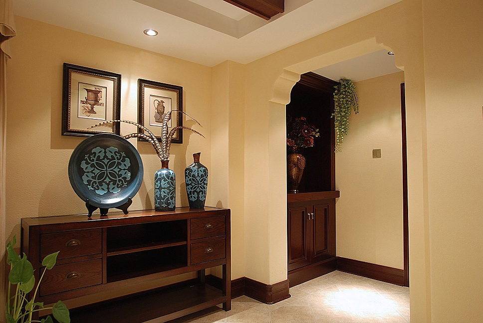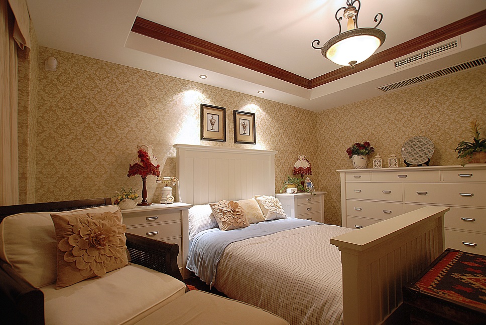 設(shè)計師對于色彩的運用也頗具匠心!美式風(fēng)格強調(diào)采用暗棕、土黃為主的色彩,這種色彩把簡潔懷舊的特點體現(xiàn)得淋漓盡致!試想一下,您走入這樣的空間內(nèi),您是否感受到一股清新自然的味道呢?您是否感受到一種原生態(tài)的質(zhì)感呢?設(shè)計師把這個空間打造成了一個自然清新脫俗的意境!彰顯美式的高貴品質(zhì)!